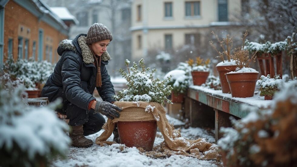 Wickeln Sie Töpfe in Jute, Kokosmatten oder alte Decken ein. Luftpolsterfolie oder Holzplatten unter dem Topf verhindern Bodenkälte. Bei empfindlichen Arten wie Oleander, Zitrusbäumchen oder Rosmarin empfiehlt sich ein Winterquartier in einem hellen, kühlen Raum (5–10 °C). Wichtig ist, dass die Erde nie komplett austrocknet, aber auch keine Staunässe entsteht.